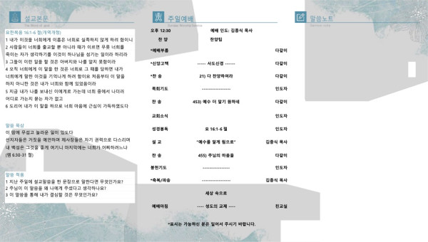 2023년 10월 22일 페이지 정보 작성자 산라몬밸리 댓글 0건 조회 5,423회 작성일 23-10-21 08:01 목록 본문 주일 주보 이전글2023년 10월 29일 23.10.26 다음글2023년 10월 15일 23.10.12 댓글 0 댓글목록 등록된 댓글이 없습니다. 목록