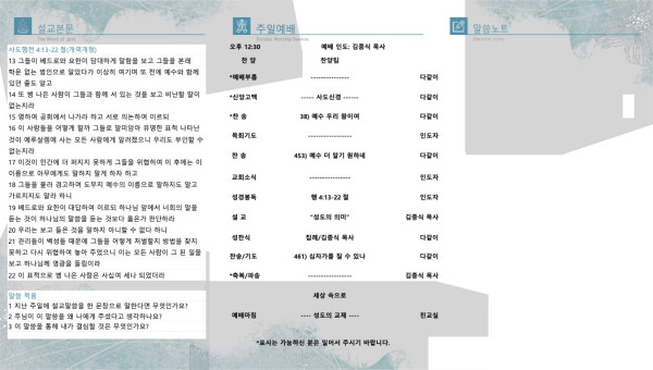 2023년 11월 5일 페이지 정보 작성자 산라몬밸리 댓글 0건 조회 5,443회 작성일 23-11-01 20:10 목록 본문 주일 주보 이전글2023년 11월 12일 23.11.09 다음글2023년 10월 29일 23.10.26 댓글 0 댓글목록 등록된 댓글이 없습니다. 목록