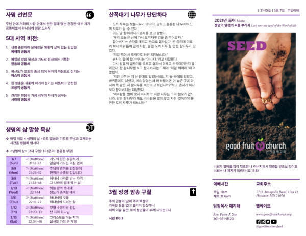 2021-03-07 페이지 정보 작성자 선한열매교회 댓글 0건 조회 3,585회 작성일 21-04-03 00:09 목록 본문 2021-03-07 이전글2021-03-14 21.04.03 다음글2021-02-28 21.04.03 댓글 0 댓글목록 등록된 댓글이 없습니다. 목록