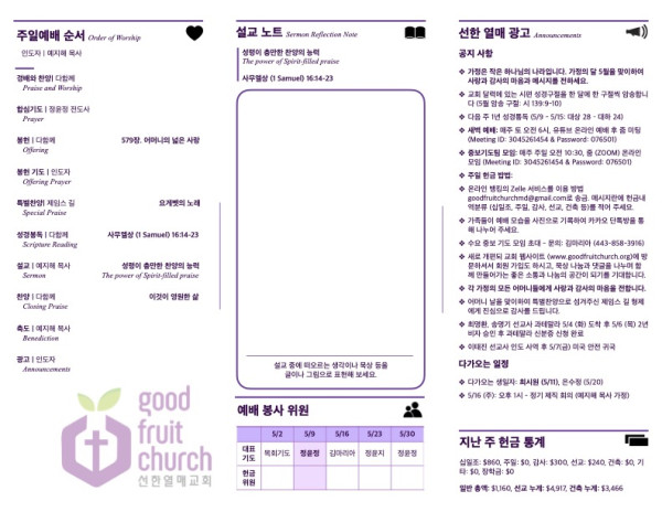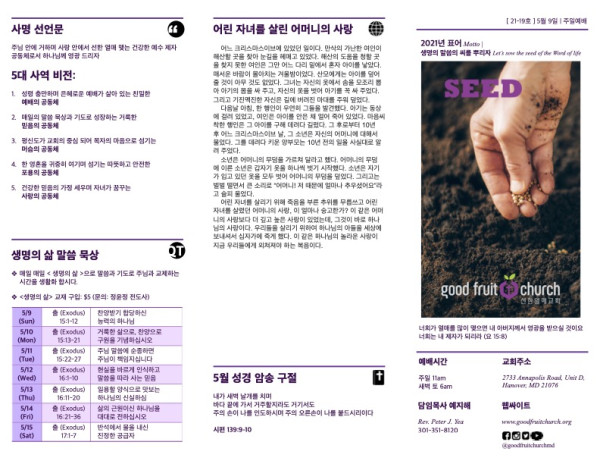 2021-05-09 페이지 정보 작성자 선한열매교회 댓글 0건 조회 4,059회 작성일 21-05-08 20:04 목록 본문 2021-05-09 주보 이전글2021-05-16 21.05.15 다음글2021-05-02 21.05.01 댓글 0 댓글목록 등록된 댓글이 없습니다. 목록