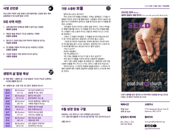 2021-06-13 페이지 정보 작성자 선한열매교회 댓글 0건 조회 3,977회 작성일 21-06-12 19:11 목록 본문 2021-06-13 주보 이전글2021-06-20 21.06.20 다음글2021-06-06 21.06.07 댓글 0 댓글목록 등록된 댓글이 없습니다. 목록