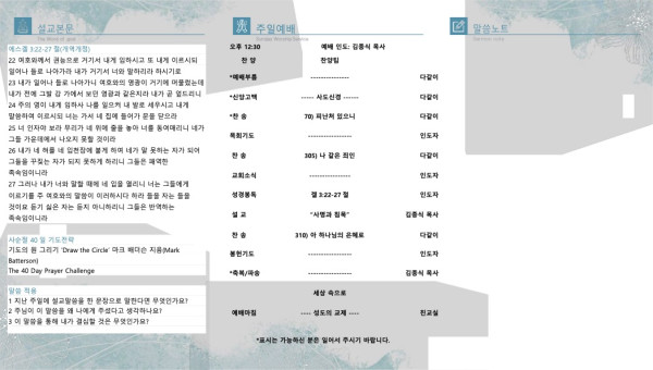 2024년 2월 11일 페이지 정보 작성자 산라몬밸리 댓글 0건 조회 5,136회 작성일 24-02-11 15:50 목록 본문 주일 주보 이전글2024년 2월 18일 24.02.14 다음글2024년 2월 4일 24.01.30 댓글 0 댓글목록 등록된 댓글이 없습니다. 목록