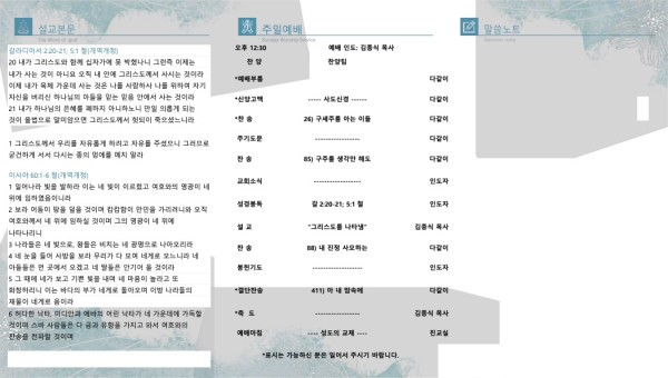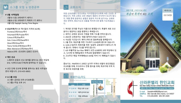 2023년 3월 19일 페이지 정보 작성자 산라몬밸리 댓글 0건 조회 5,935회 작성일 23-03-16 08:12 목록 본문 주일 주보 이전글2023년 4월 2일 23.03.30 다음글2023년 3월 12일 23.03.10 댓글 0 댓글목록 등록된 댓글이 없습니다. 목록