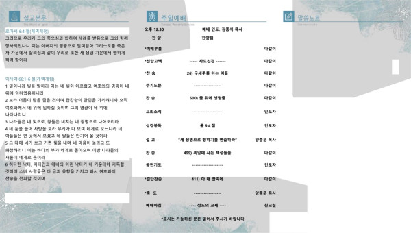 2023년 3월 12일 페이지 정보 작성자 산라몬밸리 댓글 0건 조회 6,164회 작성일 23-03-10 16:24 목록 본문 주일 주보 이전글2023년 3월 19일 23.03.16 다음글2023년 3월 5일 23.02.28 댓글 0 댓글목록 등록된 댓글이 없습니다. 목록