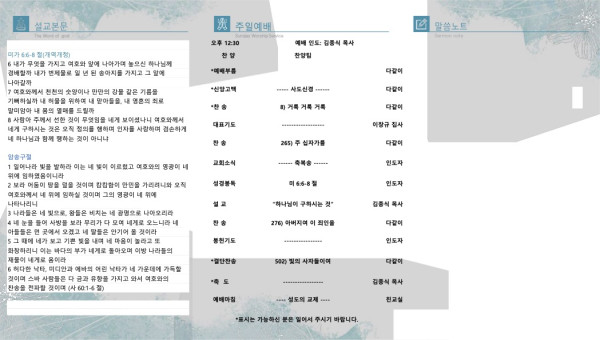 2023년 1월 22일 페이지 정보 작성자 산라몬밸리 댓글 0건 조회 6,183회 작성일 23-01-17 08:20 목록 본문 주일 주보 이전글2023년 1월 29일 23.01.24 다음글2023년 1월 15일 23.01.13 댓글 0 댓글목록 등록된 댓글이 없습니다. 목록