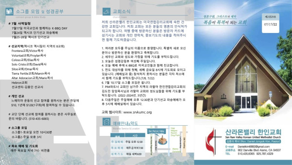 2022년 7월 17일 페이지 정보 작성자 산라몬밸리 댓글 0건 조회 7,092회 작성일 22-07-14 13:27 목록 본문 주일 주보 이전글2022년 7월 24일 22.07.21 다음글2022년 7월10일 22.07.08 댓글 0 댓글목록 등록된 댓글이 없습니다. 목록