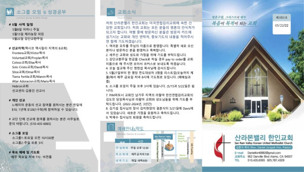 2022년 5월 22일 페이지 정보 작성자 산라몬밸리 댓글 0건 조회 5,943회 작성일 22-05-20 08:27 목록 본문 강단교환 주일 이전글2022년 5월 29일 22.05.26 다음글2022년 5월15일 22.05.12 댓글 0 댓글목록 등록된 댓글이 없습니다. 목록