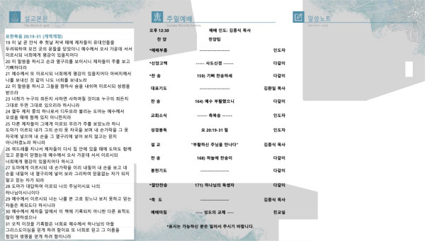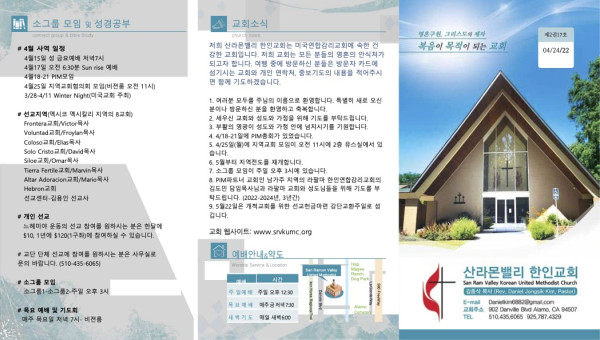 2022년 4월 24일 페이지 정보 작성자 산라몬밸리 댓글 0건 조회 6,698회 작성일 22-04-22 08:22 목록 본문 주일 주보 이전글2022년 5월 1일 22.04.29 다음글2022년 4월17일 부활주일 22.04.14 댓글 0 댓글목록 등록된 댓글이 없습니다. 목록