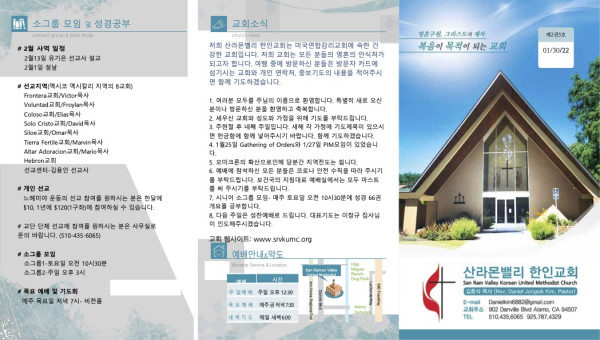 2022년 1월 30일 페이지 정보 작성자 산라몬밸리 댓글 0건 조회 7,700회 작성일 22-01-27 09:10 목록 본문 주현절 후 넷째 주일 이전글2022년 2월6일 22.02.03 다음글2022년 1월23일 주일예배 22.01.21 댓글 0 댓글목록 등록된 댓글이 없습니다. 목록