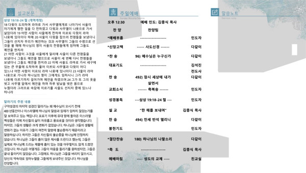 2021년 12월 26일 주일 페이지 정보 작성자 산라몬밸리 댓글 0건 조회 7,450회 작성일 21-12-23 14:59 목록 본문 주일 주보 이전글2021년 12월 31일 송구영신 예배 21.12.31 다음글2021년 12월 24일 성탄절 이브 21.12.23 댓글 0 댓글목록 등록된 댓글이 없습니다. 목록
