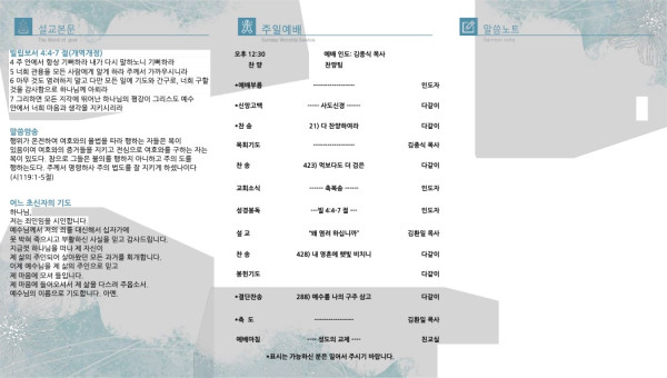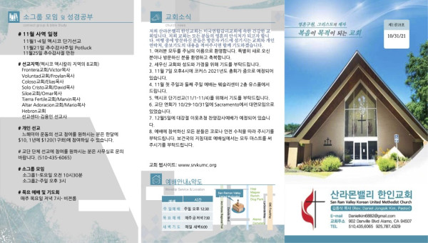 2021년 10월 31일 페이지 정보 작성자 산라몬밸리 댓글 0건 조회 7,501회 작성일 21-10-27 15:05 목록 본문 주일 주보 이전글2021년 11월 7일 21.11.06 다음글2021년 10월 24일 21.10.22 댓글 0 댓글목록 등록된 댓글이 없습니다. 목록