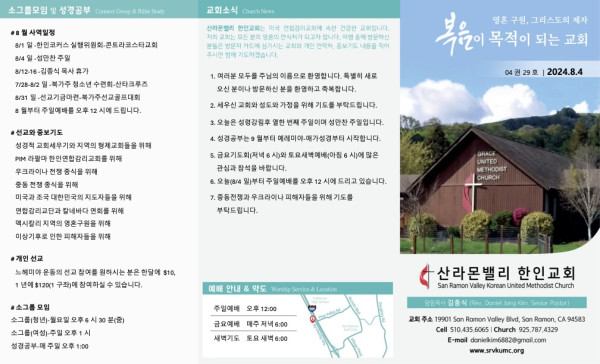 2024년 8월 4일 페이지 정보 작성자 산라몬밸리 댓글 0건 조회 3,351회 작성일 24-07-31 09:51 목록 본문 주일 주보 이전글2024년 8월 11일 24.08.07 다음글2024년 7월 28일 24.07.23 댓글 0 댓글목록 등록된 댓글이 없습니다. 목록
