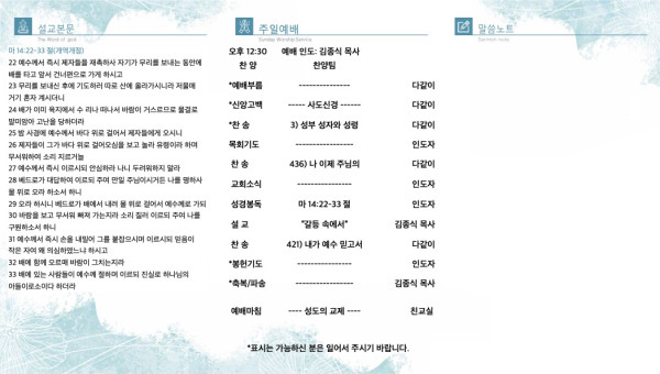 2024년 7월 21일 페이지 정보 작성자 산라몬밸리 댓글 0건 조회 4,355회 작성일 24-07-19 16:26 목록 본문 주일 주보 이전글2024년 7월 28일 24.07.23 다음글2024년 7월 14일 24.07.19 댓글 0 댓글목록 등록된 댓글이 없습니다. 목록