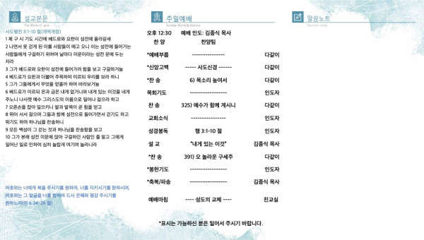 2024년 6월 30일 페이지 정보 작성자 산라몬밸리 댓글 0건 조회 3,425회 작성일 24-06-27 05:52 목록 본문 주일 주보 이전글2024년 7월 7일 24.07.19 다음글2024년 6월 23일 24.06.23 댓글 0 댓글목록 등록된 댓글이 없습니다. 목록