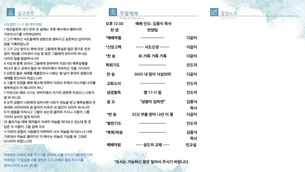 2024년 5월 12일 페이지 정보 작성자 산라몬밸리 댓글 0건 조회 4,873회 작성일 24-05-08 15:53 목록 본문 주일 주보 이전글2024년 5월19일 24.05.16 다음글2024년 5월 5일 24.05.02 댓글 0 댓글목록 등록된 댓글이 없습니다. 목록