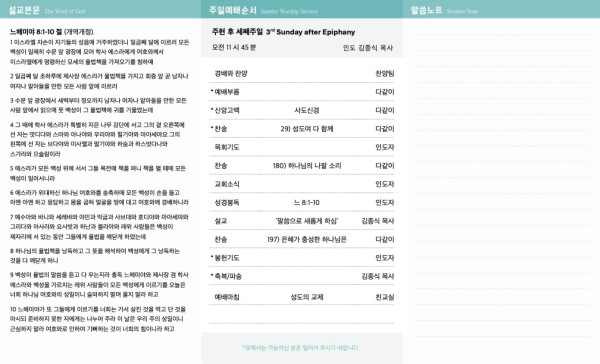 2025년 1월 26일 페이지 정보 작성자 산라몬밸리 댓글 0건 조회 2,792회 작성일 25-01-24 10:43 목록 본문 주일 주보 이전글2025년 2월 9일 25.02.07 다음글2025년 1월 19일 25.01.17 댓글 0 댓글목록 등록된 댓글이 없습니다. 목록